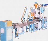 Линия гранулирования композиционных материалов ЛГКМ 34/34 предназначена для получения гранул композиционных мате-риалов диаметрами от 3 до 5 мм на основе полимерных масс (полиэтилена, полипропиле-на, ПВХ, полистирола и др.) с добавлением до восьми видов минеральных наполнителей, в том числе промышленных и бытовых отходов, а также армированных различными ми-неральными волокнами (стеклянными, углеродными, базальтовыми и др.) методом экст-рузии через стренговую головку.