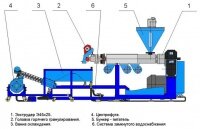 Линия горячего гранулирования ЛГГ-45 является частью технологического оборудования для вторичной переработки пластмасс и предназначена для получения гранул высокого качества из технологических отходов производства изделий из пластмасс (труб, профилей, емкостей, пленок и др.). Отходы могут быть в виде литников, бракованных изделий и очищенных бытовых отходов из пластмасс (использованные канистры, бутылки, флаконы, профили, пленки, мешки идр.), измельченных вне линии в измельчителях пластмасс или в агломераторах до размеров не более 8 мм из полиэтилена высокого давления, полиэтилена низкого давления, полистирола, полипропилена и их композиций. Полученные гранулы используют в дальнейшем в производстве изделий в качестве добавки к основному сырью и в производстве изделий технического назначения (технические пленки, емкости, трубы и др.).