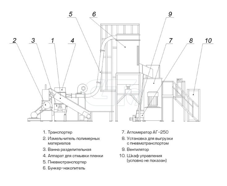 Линия предназначена для переработки бывшей в употреблении полимерной плёнки в агломерат.